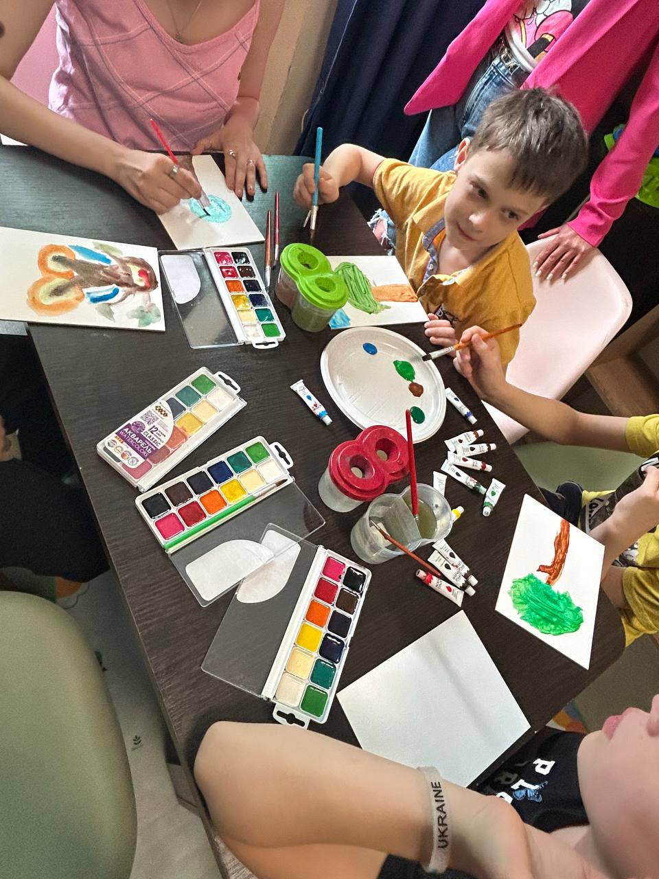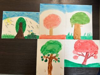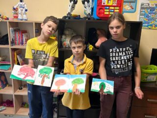 Маленькі мешканці шелтеру малювали дерева та спілкувалися між собою та з психологинею. Майже усі уявили та намалювали рослини, які були поруч з їхніми домівками і асоціюються з сім’єю, миром та безпекою. На жаль, через війну дім для них перестав бути безпечним місцем і їм довелося покинути його.