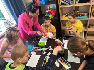 Цього тижня у прихистку Support & Protection Center UA психологиня фонду Ірина Бедрик провела з дітками заняття з арттерапії. Цей метод психотерапії дозволяє через творчість пережити внутрішні конфлікти, тривогу та страхи.